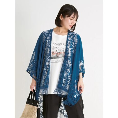 繊細なレースの透け感でエレガントなムードを漂わせるポンチョカーディガン。