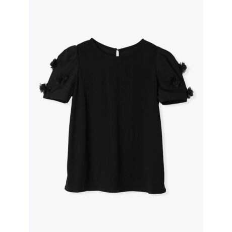 袖に立体的な花モチーフを散りばめた愛らしいトップス
