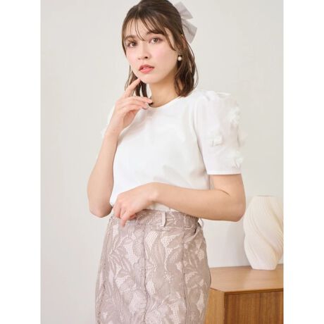 袖に立体的な花モチーフを散りばめた愛らしいトップス
