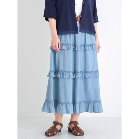 ティアードフリルスカート(チェック柄・デニム)