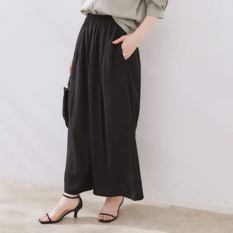 ぐるりウエストゴム仕様で楽チンな穿き心地のワイドパンツ。