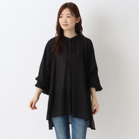 ふんわりとしたボリュームと透け感のあるボイル生地が涼し気な印象のブラウスです。