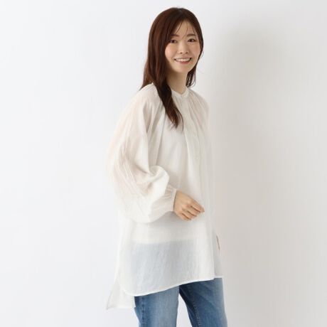 ふんわりとしたボリュームと透け感のあるボイル生地が涼し気な印象のブラウスです。