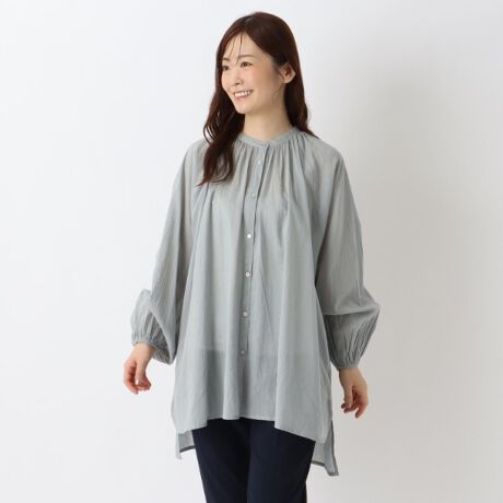 ふんわりとしたボリュームと透け感のあるボイル生地が涼し気な印象のブラウスです。