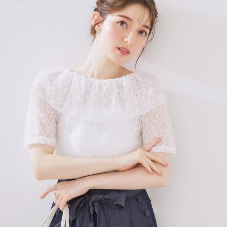 繊細でストレッチ性のあるレース素材を使用したデザインプルオーバー。