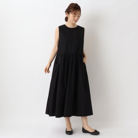 切替上部のシンプルなノースリーブデザインと、たっぷり取ったウエストギャザーがメリハリのある1着です。