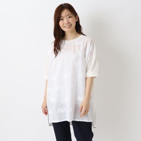 生地にマッチングした立体刺繍が上品な印象のプルオーバーです。