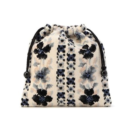 可憐なフラワーモチーフを整然と並べた『エアリーガーデン』の巾着。コスメをはじめ、エチケットグッズを入れたり、お菓子を入れたり。バッグの中の小物をざっくりと収納するのに便利なアイテムです。持ち運びしやすく、旅行の時の荷物整理などにも活躍します。収納するアイテムによって容量を調整できるので、ギフトとしても喜ばれるアイテムです。