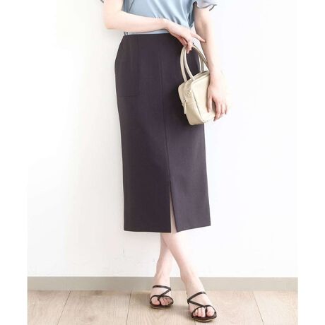 長めの丈が大人っぽい印象のIラインシルエットのスカート。裾にスリットが入っているので、タイトなシルエットながら足さばきの良さも◎。後ろウエストはゴム入りなのでラクな着心地も嬉しい。