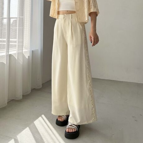 ワイドストレートシルエットは腰回りをスッキリ見せに。
