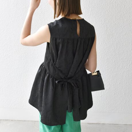 SHIPS any:〈洗濯機可能〉サテン ジャカード ノースリ ペプラム リボン ブラウス