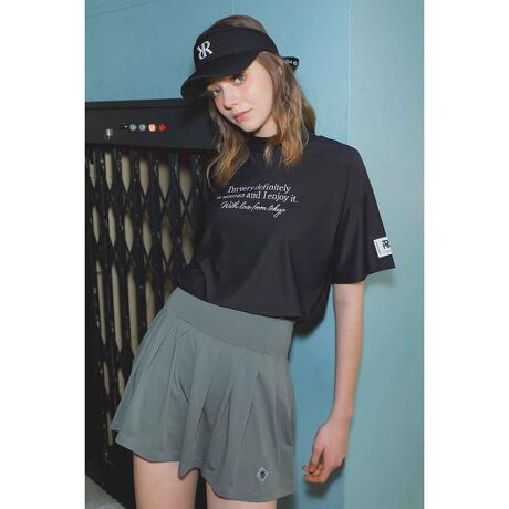 【ゆるっとこなれ感を演出できるルーズシルエットなモックネックTシャツ】■ポイントどんなスタイリングにも馴染むシンプルなデザインで、着回し力抜群なアイテム。バックデザインはオリジナルロゴを施し、さりげないアクセントをプラスしました。また、通気性抜群のメッシュ素材で動きやすさはもちろん、暑い日も快適に着用できて汗をかいてもむれにくい素材にも拘りました。■ディテールメンズライクなルーズさにすることで、華奢にみせてくれるシルエットに拘っています。■スタイリング着回し力がポイントのアイテムになるのでどんなボトムとも合わせやすいです。気分や、ゴルフ場にあわせて、INでもOUTでもお好みで着用いただけます。■生地透け感:あり裏 地:なし伸縮性:あり光沢感:なし厚 さ:薄め■商品のお気に入り登録お気に入りアイテムの再入荷・在庫1点などの通知を受け取ることができます。[注意事項]※画像の商品はサンプルです。実際の商品と仕様、加工が若干異なる場合があります。※画像の商品は光の照射や角度、お使いのモニター環境により、実物と色味が異なる場合がございます。※着用、お取り扱いの際は、アテンションタグをご確認ください。