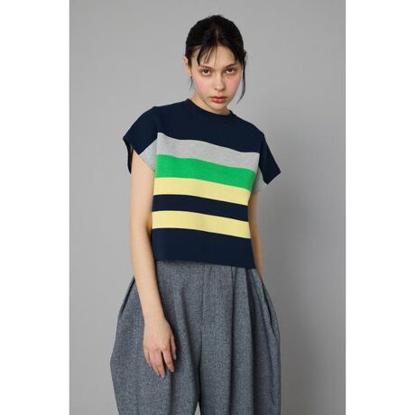 マルチボーダーデザインの清涼感あるニットトップス彩り豊かなマルチボーダーをフロントに編みたてたサマーニットトップスで、肌に吸着しにくい仕様となっています。マルチボーダーがワンポイントあるデザインとなり、彩りも夏を意識したデザインとなっています。ボーダーボックストップス[注意事項] ※画像の商品はサンプルです。実際の商品と仕様、加工が若干異なる場合があります。 ※画像の商品は光の照射や角度、お使いのモニター環境により、実物と色味が異なる場合がございます。 ※着用、お取り扱いの際は、アテンションタグをご確認ください。
