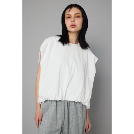 ツルッとした清涼感のある素材を使用したトップスややAラインで裾はバルーンになっています。肩周りの仕様など細部にまでこだわった一枚。同素材でパンツ(530IST81-1721 Balloon cut relax pants)の作りもあるため、セットアップでの着用もおすすめです。肌触りの良いストレッチの効いたナイロンスムースを使用しています。バルーンヘムカットトップス[注意事項] ※画像の商品はサンプルです。実際の商品と仕様、加工が若干異なる場合があります。 ※画像の商品は光の照射や角度、お使いのモニター環境により、実物と色味が異なる場合がございます。 ※着用、お取り扱いの際は、アテンションタグをご確認ください。