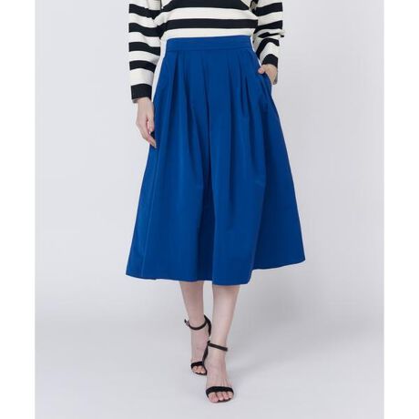 ウエストから裾にかけて流れるようなランダムタックが特徴のフレアスカートです。動くたびに揺れるプリーツが女性らしい優雅さを演出します。後ろ中心のゴムギャザーが快適なフィット感を生み出し、着脱もスムーズ。ウエストベルトには特別にデザインされたボールチェーン風の金属ファスナーがあしらわれ、リュクスなアクセントを添えています。形状記憶加工を施した、柔らかくドレープ性の高い高品質なポリエステル素材を使用。通常のメモリー素材に比べてハリと擦れる音を最小限に抑えました。発色の良い鮮やかなブルーがコーディネートの主役を飾ります。・ポケットあり・裏地なし・ウエスト後ろ部分ゴム仕様・後ろファスナーあり・水洗い可■サンプル撮影商品■こちらの商品はサンプルでの撮影となっております。実際の商品とは、サイズや色味、素材、デザイン等の仕様が若干変更になる場合がございます。