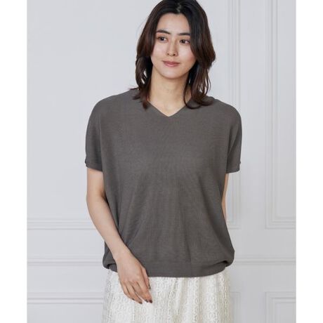 夏の名品《Cuoo》ホールガーメント®サマーニットシリーズにWEB限定デザインが登場!すっきりとしたVネックで二の腕が十分隠れる袖丈です。清涼感ある鹿の子編みの生地に、シルエットはゆるっとしていながら裾はウエストにもたつかないちょうど良いサイジングを追求しました。ホールガーメント®で継ぎ目なく編むことでストレスのない着心地です。夏の通勤スタイルにもおすすめの1枚です。・水洗い可 《WHOLE GARMENT®/ホールガーメント®》株式会社島精機製作所が独自で開発した世界初の無縫製ニット横編機によって編成された無縫製ニットウェア。ニット本来の手触りと軽さを引き立て、ドレープ性を高め、ごわつき感をもたらす縫い目をなくすことで、よりよい着心地感を実現します。※ WHOLEGARMENT ®及び ホールガーメント®は、株式会社島精機製作所の登録商標です。《Cuoo/クー》フランドルがメーカーや工場の協力を得て開発した素材。肌に優しく、一年を通して快適な着心地を保つキュプラとポリエステルの交撚糸。キュプラは他の繊維と比べ、摩擦が少なく肌と触れ合っても刺激が少ないため、肌触りが良くやさしい着心地です。吸水性に優れ、べたつきにくくムレを抑えられます。夏はひんやり冬は暖かく、通年にわたり心地よく着こなせます。