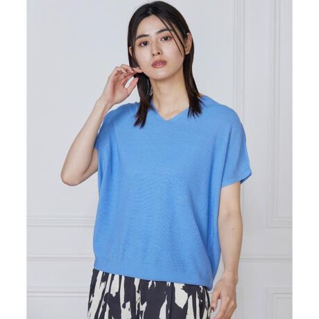 夏の名品《Cuoo》ホールガーメント®サマーニットシリーズにWEB限定デザインが登場!すっきりとしたVネックで二の腕が十分隠れる袖丈です。清涼感ある鹿の子編みの生地に、シルエットはゆるっとしていながら裾はウエストにもたつかないちょうど良いサイジングを追求しました。ホールガーメント®で継ぎ目なく編むことでストレスのない着心地です。夏の通勤スタイルにもおすすめの1枚です。・水洗い可 《WHOLE GARMENT®/ホールガーメント®》株式会社島精機製作所が独自で開発した世界初の無縫製ニット横編機によって編成された無縫製ニットウェア。ニット本来の手触りと軽さを引き立て、ドレープ性を高め、ごわつき感をもたらす縫い目をなくすことで、よりよい着心地感を実現します。※ WHOLEGARMENT ®及び ホールガーメント®は、株式会社島精機製作所の登録商標です。《Cuoo/クー》フランドルがメーカーや工場の協力を得て開発した素材。肌に優しく、一年を通して快適な着心地を保つキュプラとポリエステルの交撚糸。キュプラは他の繊維と比べ、摩擦が少なく肌と触れ合っても刺激が少ないため、肌触りが良くやさしい着心地です。吸水性に優れ、べたつきにくくムレを抑えられます。夏はひんやり冬は暖かく、通年にわたり心地よく着こなせます。
