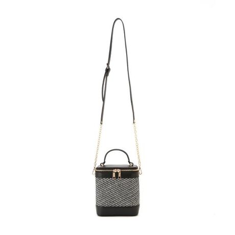 季節感のある涼しげな雑材を使ったコンビバッグです。箱型のようなフォルムが愛らしく、口元はダブルファスナーで中身が見えないデザイン。コーディネートに合わせやすいモノトーンカラーなのでキレイめにもカジュアルにもおすすめ。斜め掛け・肩掛けも可能なショルダーベルト付きです。