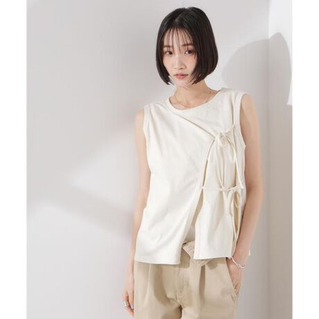 ・フロントに施されたリボンディテールが女性らしい印象のノースリーブトップス