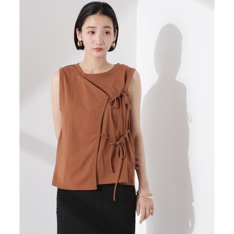 ・フロントに施されたリボンディテールが女性らしい印象のノースリーブトップス