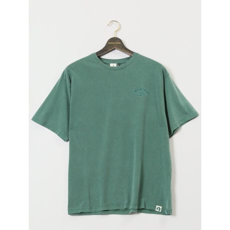古着のような雰囲気が漂う、クルーネックの半袖Tシャツです。同色の糸を使用した左胸のロゴ刺繍が、さりげないアクセントになっています。味わい深い雰囲気は、デニムやチノパン、ショートパンツはもちろん、カーゴパンツ等のミリタリーアイテムとの相性も抜群。タウンユースからアウトドア、お家でのリラックスタイムまで、幅広いシーンに大活躍してくれます。