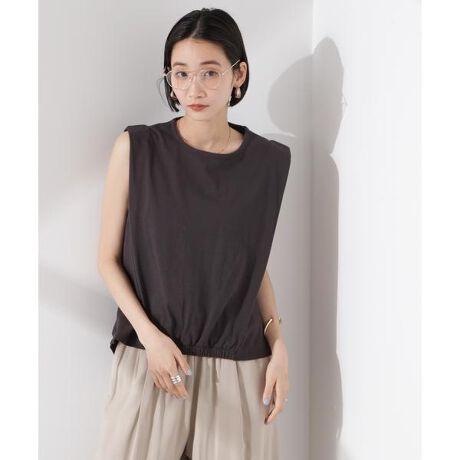 ・フロントに入ったギャザーがポイントのノースリーブトップス