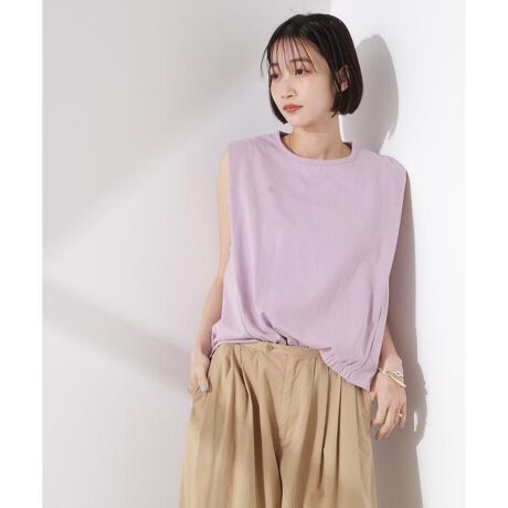 ・フロントに入ったギャザーがポイントのノースリーブトップス