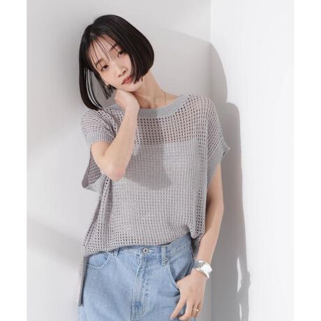 ラメ糸を引き揃えた、ざっくりとしたメッシュ編みの清涼感あるニットプルオーバー。動く度に煌めくラメ糸の素材感が、日常にさりげない華やぎを演出してくれるアイテムです。