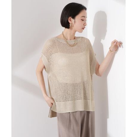 ラメ糸を引き揃えた、ざっくりとしたメッシュ編みの清涼感あるニットプルオーバー。動く度に煌めくラメ糸の素材感が、日常にさりげない華やぎを演出してくれるアイテムです。
