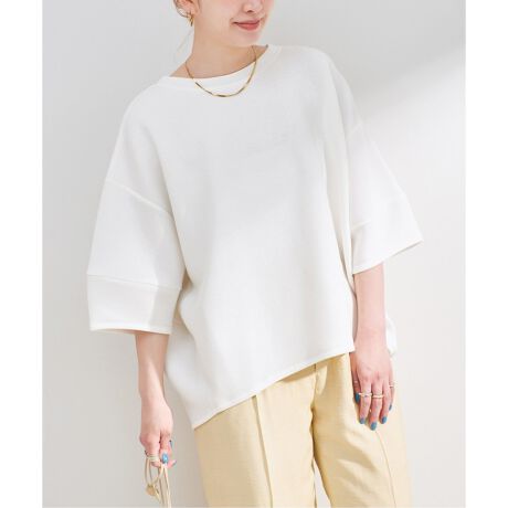着心地:肘が隠れる袖丈ですが素材感軽く、肌離れしたフォルムなので涼しく着られます。ゆとりがあるので寒い時期には重ね着しやすいシルエットで、切り替えによって立体感のあるシルエットが魅力です。