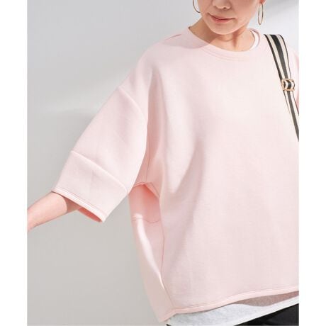 着心地:肘が隠れる袖丈ですが素材感軽く、肌離れしたフォルムなので涼しく着られます。ゆとりがあるので寒い時期には重ね着しやすいシルエットで、切り替えによって立体感のあるシルエットが魅力です。