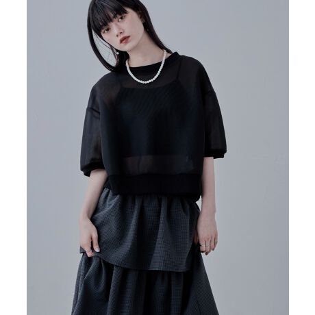etoll. エトル 軽やかなシアーダンボール素材で仕立てた、立体的なフォルムが魅力の半袖カーデ。