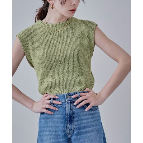 etoll. エトル 伸縮性たっぷりでドライ感のある素材が涼し気な印象を持つ、ノースリーブサマーニット。