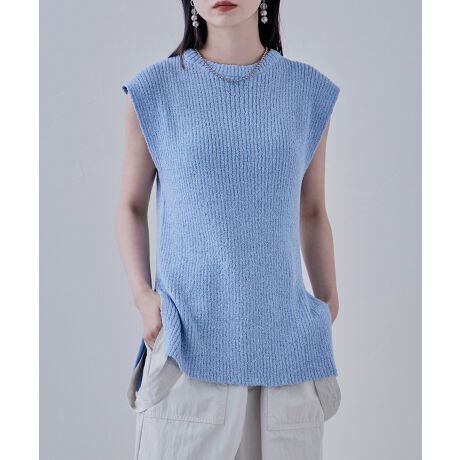 etoll. エトル 伸縮性たっぷりでドライ感のある素材が涼し気な印象を持つ、ノースリーブサマーニット。