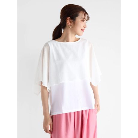 ケープ部分は程よくシアー感があり、動きに合わせて揺れるシルエットが、女性らしさを演出。