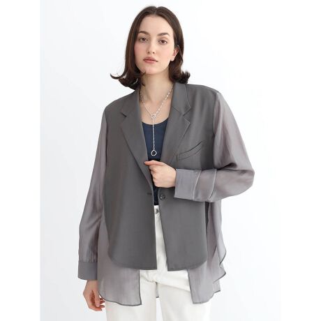 異素材の組み合わせから新たな雰囲気を生み出す新ジャケットスタイル。袖、身頃にシアー素材を取り入れ、夏の羽織りスタイルも軽やかで清涼感ある着こなしを叶えます。フロントバックともに違った風合いを醸し出し、ほのかな光沢がどこか上品かつ大人っぽさを感じさせます。日常の着こなしをグレードアップさせてくれる、おすすめの逸品です。