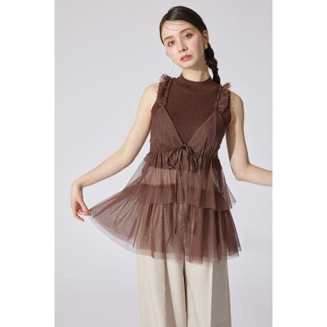 【シーズンレスに使えるアップデートアイテム】■ポイント柔らかなチュールを幾重にも重ね、ボリューム感と落ち感のバランスを整えて作られたチュールジレが完成しました。■ディテール肩紐は後ろ側でクロスしているデザインでバックデザインにもこだわりました。肩紐は後ろで結んで調節が可能。様々な体系の方にピッタリフィットできます。フロントのリボンがアクセントのriendaらしいチュールジレです。■スタイリング110IS570-2171 ウォッシャブルRIBタンクトップとの合わせがおすすめです。シンプルな無地Tシャツや肌寒い日はシンプルな長袖のニット合わせもおすすめです。■生地透け感:あり裏 地:なし伸縮性:若干あり光沢感:なし厚 さ:なし■商品のお気に入り登録お気に入りアイテムの再入荷・在庫1点などの通知を受け取ることができます。[注意事項]※画像の商品はサンプルです。実際の商品と仕様、加工が若干異なる場合があります。※画像の商品は光の照射や角度、お使いのモニター環境により、実物と色味が異なる場合がございます。※着用、お取り扱いの際は、アテンションタグをご確認ください。