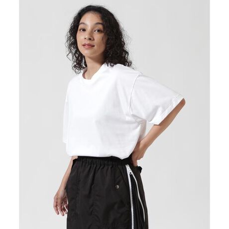 存在感のあるオーバーサイズが特徴のATON定番Tシャツ。ゆとりのあるシルエット、横幅に対し縦の比率が少し長く、少しモードな印象です。素材に落ち感があり、女性がオーバーサイスで着用しても様になる1着です。
