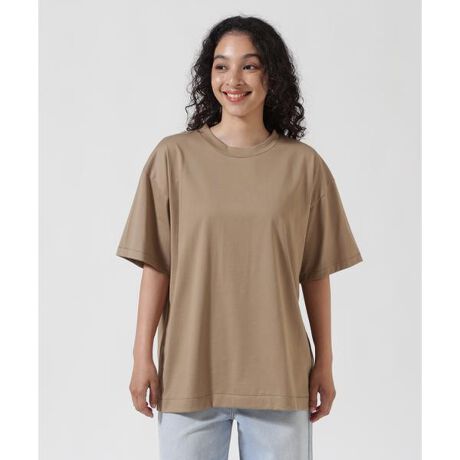 存在感のあるオーバーサイズが特徴のATON定番Tシャツ。ゆとりのあるシルエット、横幅に対し縦の比率が少し長く、少しモードな印象です。素材に落ち感があり、女性がオーバーサイスで着用しても様になる1着です。