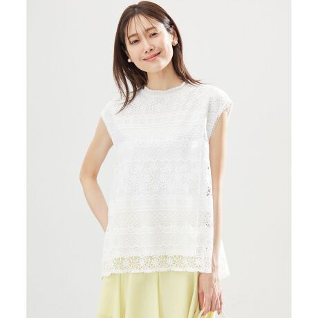 【スタッフコメント】▼身長158cm|着用サイズ2 (通常着用サイズM)繊細なレースながらイージーケアな拘りの詰まったの映えブラウス。襟元やそでぐりまでレースがあしらわれており上品な印象を与えてくれます。オンオフ問わず使える万能さもポイントです!