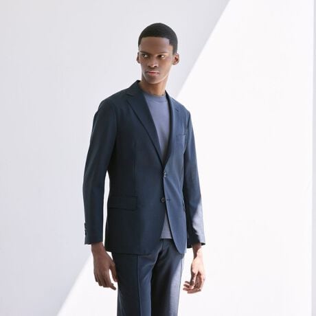 ブランドを代表するテーラードセットアップのNEWBRIDGEモデルにおける最軽量バージョンです。ポリエステルをブレンドしたウール素材はシワになり難く、ストレスを感じさせない軽い着心地です。汗ばむ季節のビジネスシーン、特に出張の多いジェットセッターには最適です。