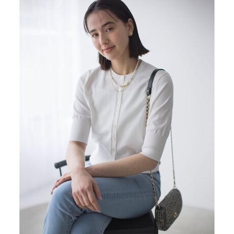 【スタッフコメント】▼身長158cm|着用サイズ2 (通常着用サイズM)袖の丈感が気になる二の腕を隠しながら上品に見せてくれるカーディガン。夏の冷房対策にもお勧め◎大人の日常に馴染む1枚は持っておきたいアイテムです!
