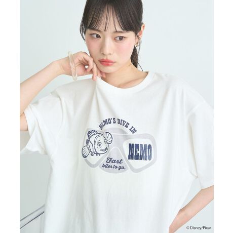 ディズニーの人気アニメーション『Finding Nemo』とコラボレーションしたTシャツ。キャラクターをやや艶のあるシリコーンプリントで表現し、キャッチーなアクセントをプラスしました。着回しのきくオフホワイトとチャコールグレーの2色展開。スカートからパンツまで様々なボトムと相性よく、デイリーに活躍するおすすめのアイテムです。透け感[ややあり]