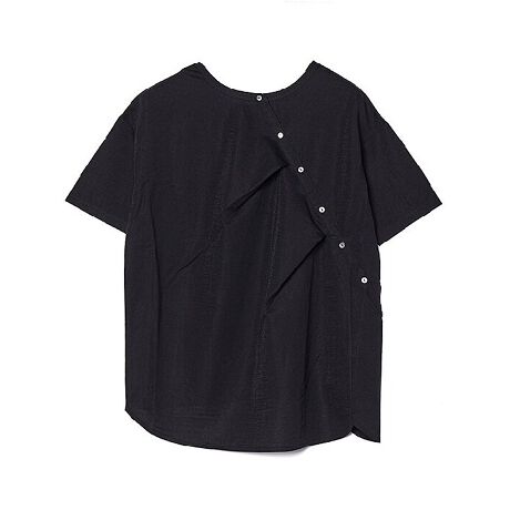前後着用可能で、シンプルなデザイン面と、反対面は斜めの釦あき+タックを入れたデザイン。