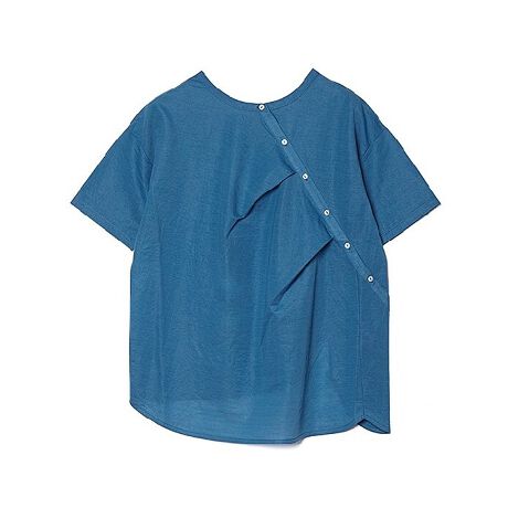 前後着用可能で、シンプルなデザイン面と、反対面は斜めの釦あき+タックを入れたデザイン。