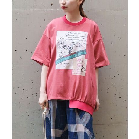 シンプルなTシャツかと思いきや、裾はアシンメトリーにリブを付けているのがポイント!