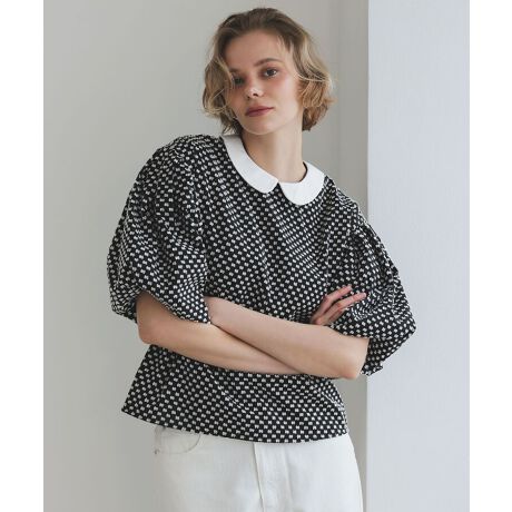 ドットリボン刺繍の生地を使用したブラウス。