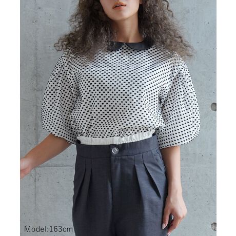 ドットリボン刺繍の生地を使用したブラウス。