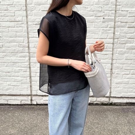 キレイ目にも使えるシアーオーガンジーレイヤードノースリーブ