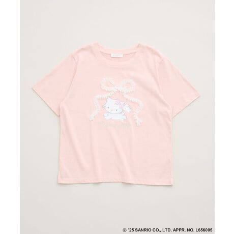 サンリオの人気キャラクター、「チャーミーキティ」をプリントした愛らしいTシャツ。レースリボンやきらりと光るラメ刺繍がキュートなデザインです。コットンベースのさらりとした着心地も嬉しいポイント。ベーシックなシルエットでボトムを選ばず、幅広いスタイリングにマッチしてくれる汎用性の高いアイテムです。透け感[ややあり]